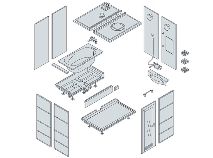 システムバス/ユニットバスとは、浴室を構成する各部材(壁・床・天井)などをあらかじめ工場で成形し、施工現場で組み立てる「乾式工法」で完成させる浴室のことです。そのため、防水性や保温性が高いなどのメリットがあります。