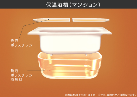 浴槽とフタに発泡ポリスチレン断熱材を使用し、高い保温効果を発揮します。追い焚き回数を減らしながら、遅く帰ってもあたたかいお湯に入浴できます。
