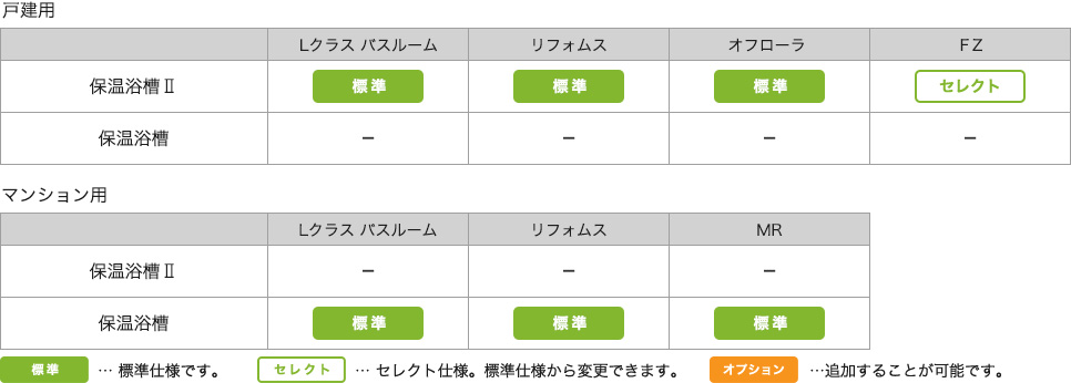 保温浴槽Ⅱ:Lクラスバスルーム[戸建]・リフォムス[戸建用]・オフローラ・FZ