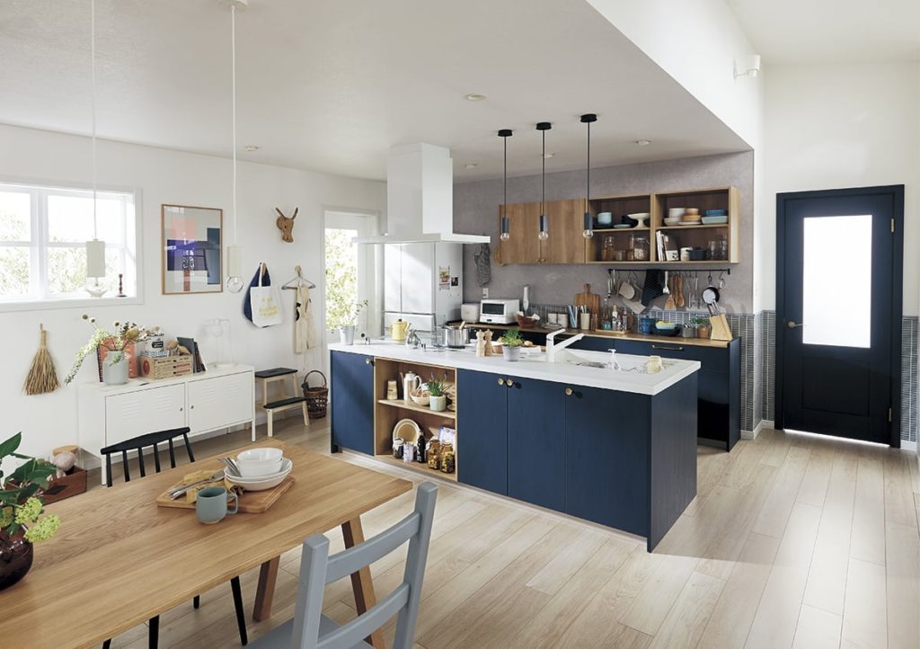 | 扉柄 | キッチン部:CX40シリーズ ネイビーオーク柄(XZ) 扉柄ストッカー カップボード部(フロア部):CX40シリーズ ネイビーオーク柄(XZ) カップボード部(ウォール部):CX40シリーズ オーク柄(XK) |
