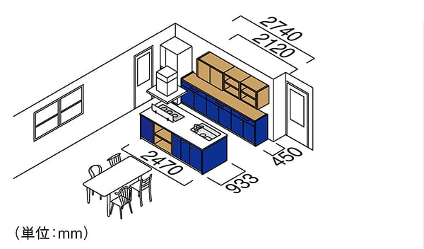 カップボード部:2740×450mm組み合わせ希望小売価格キッチン部:扉グレード40 約236万円(税抜)